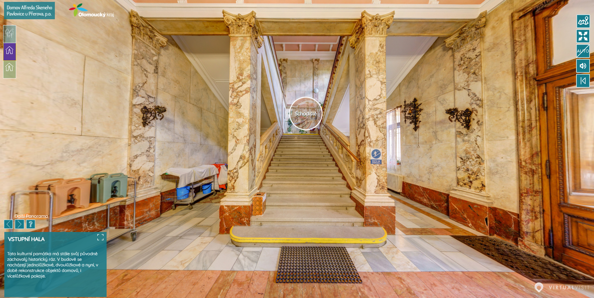 Our virtual tours are not just a jumble of uninteresting empty corridors. They include spoken commentary, descriptions, speech bubbles, and, in addition to normal panoramic photos, aerial views from a drone.